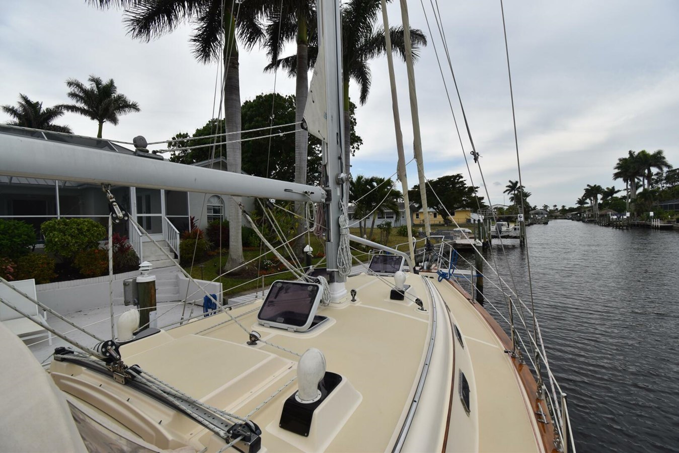 • Keel stepped roller furling mast with 16” height reduction for better bridge clearance (note: headsails were unaffected by this change; the mainsail was cut down by three inches).