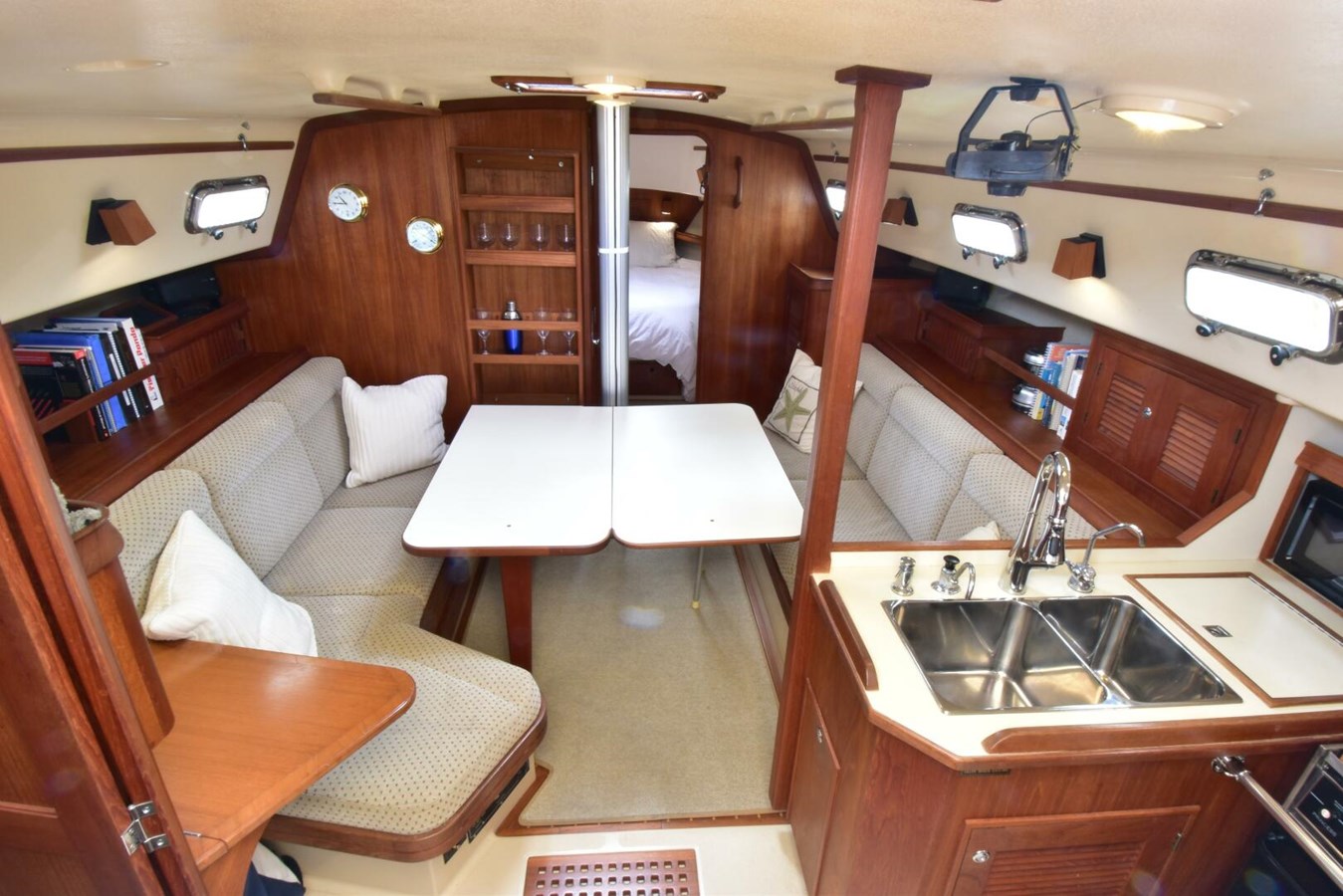 It is a rare privilege when I come across a boat this well taken care of, and I have had the pleasure of representing this boat twice, once when the original owner decided to sell, and now by the current owner and buyer of this boat just over four years ago. The current owner has maintained the boat in Bristol condition, upgraded the electrical system with lithium-ion batteries and related charging/monitoring systems, replaced the standing rigging, lifelines, the engine heat exchanger and prop shaft, and installed a new VHF and windlass. Factory carpeting has protected the cabin sole, and a new professional varnish job on all the exterior teak makes this boat shine! With the shoal draft, cozy anchorages have never been more accessible.Equipment